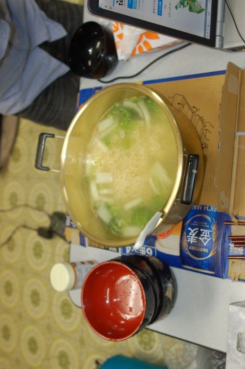さっそく荷物を運び込んで夕食。今夜は面倒なのでインスタントラーメンです。