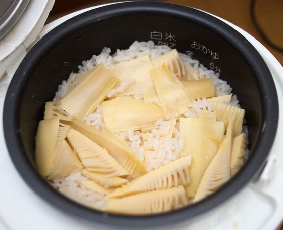 アク抜きした後のタケノコを使いましたが、生の方がよりおいしいでしょうね。