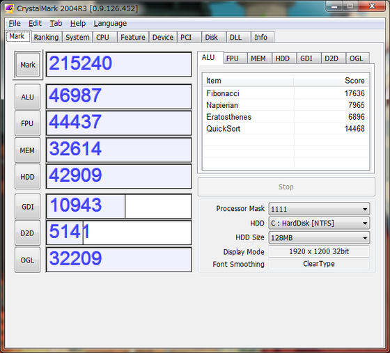 ついでCrystalmark。ずいぶん前に開発は停止していますが、何だかんだ使い慣れているもので。