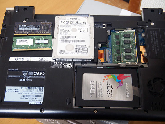 すぐさま4GBのメモリを8GBにしつつ、HDDをSSDに交換。