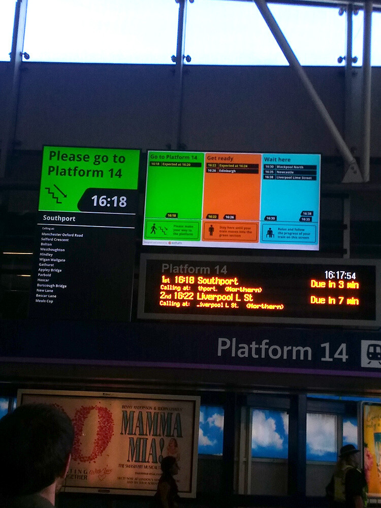 予定していた列車が激混みで遅れているようで…