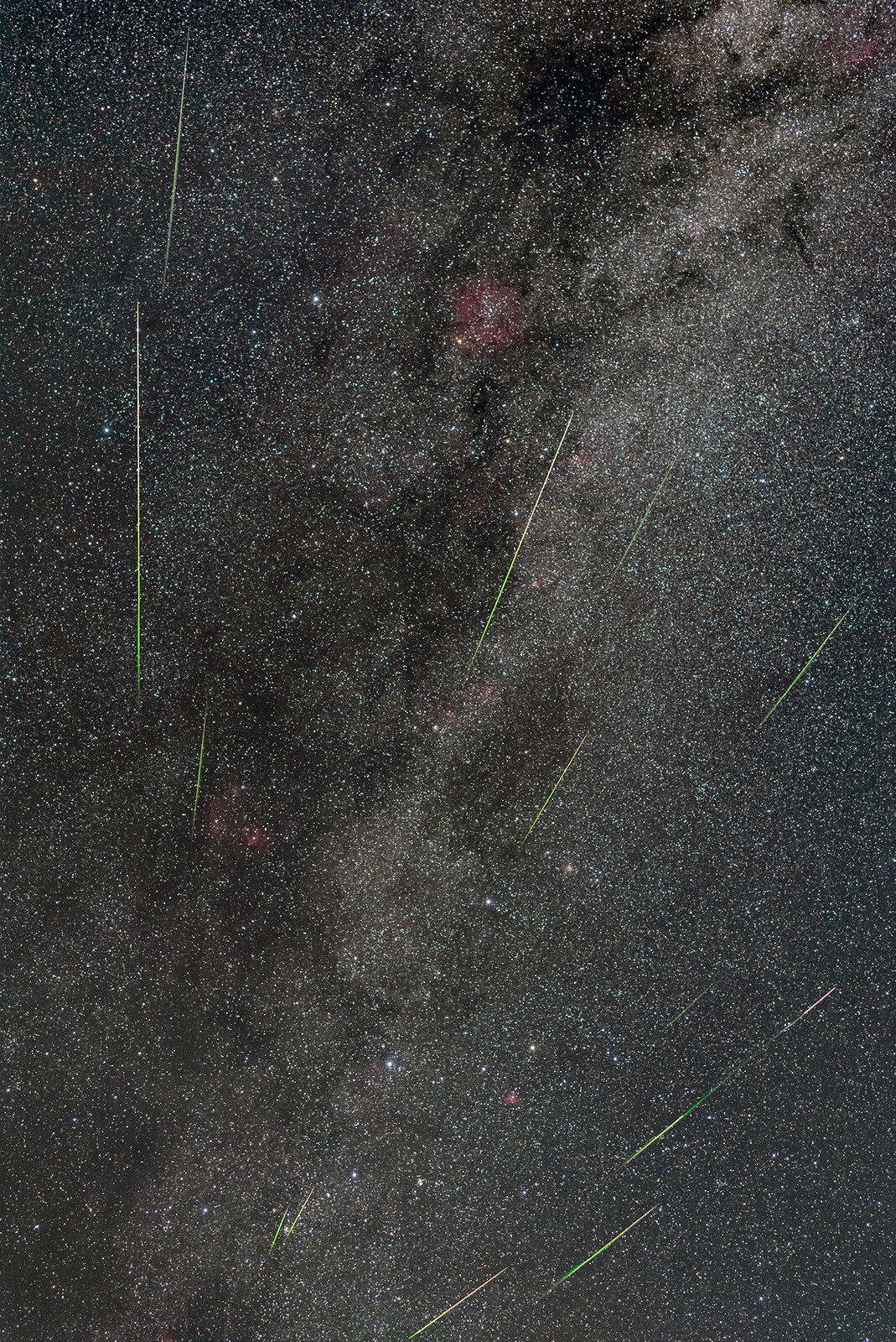 8/12-14分の約750枚から流星が写ったカットを選別、流星部分を比較明合成