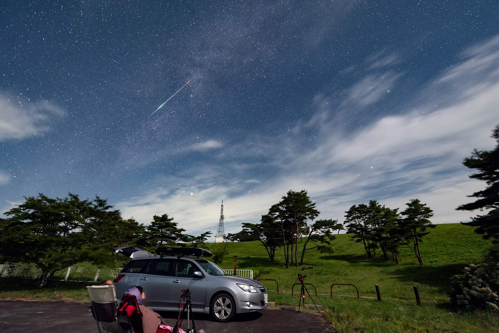 機材を設置、流れ星は極大日だけあってなかなかのレベル。