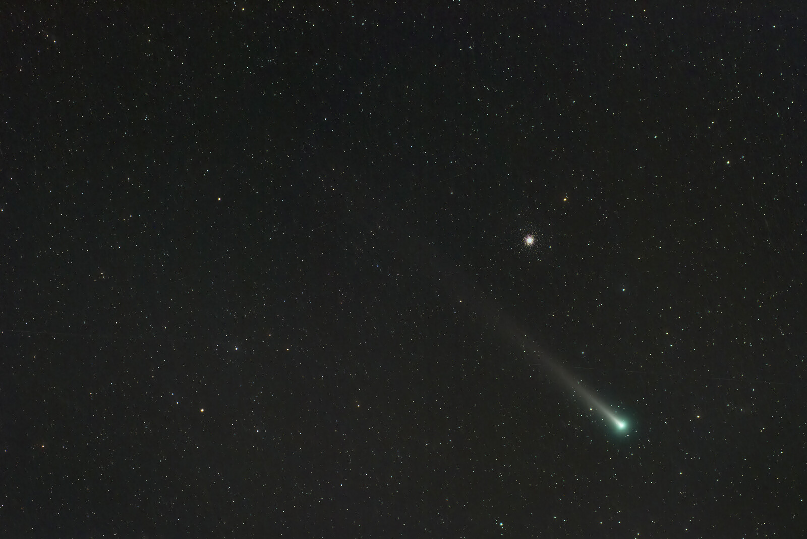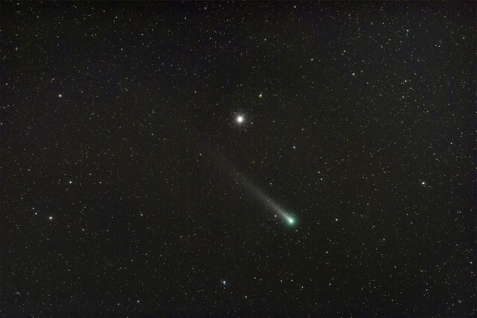 7x50の双眼鏡で探すと、あっけなくM3と彗星の核が見えます。