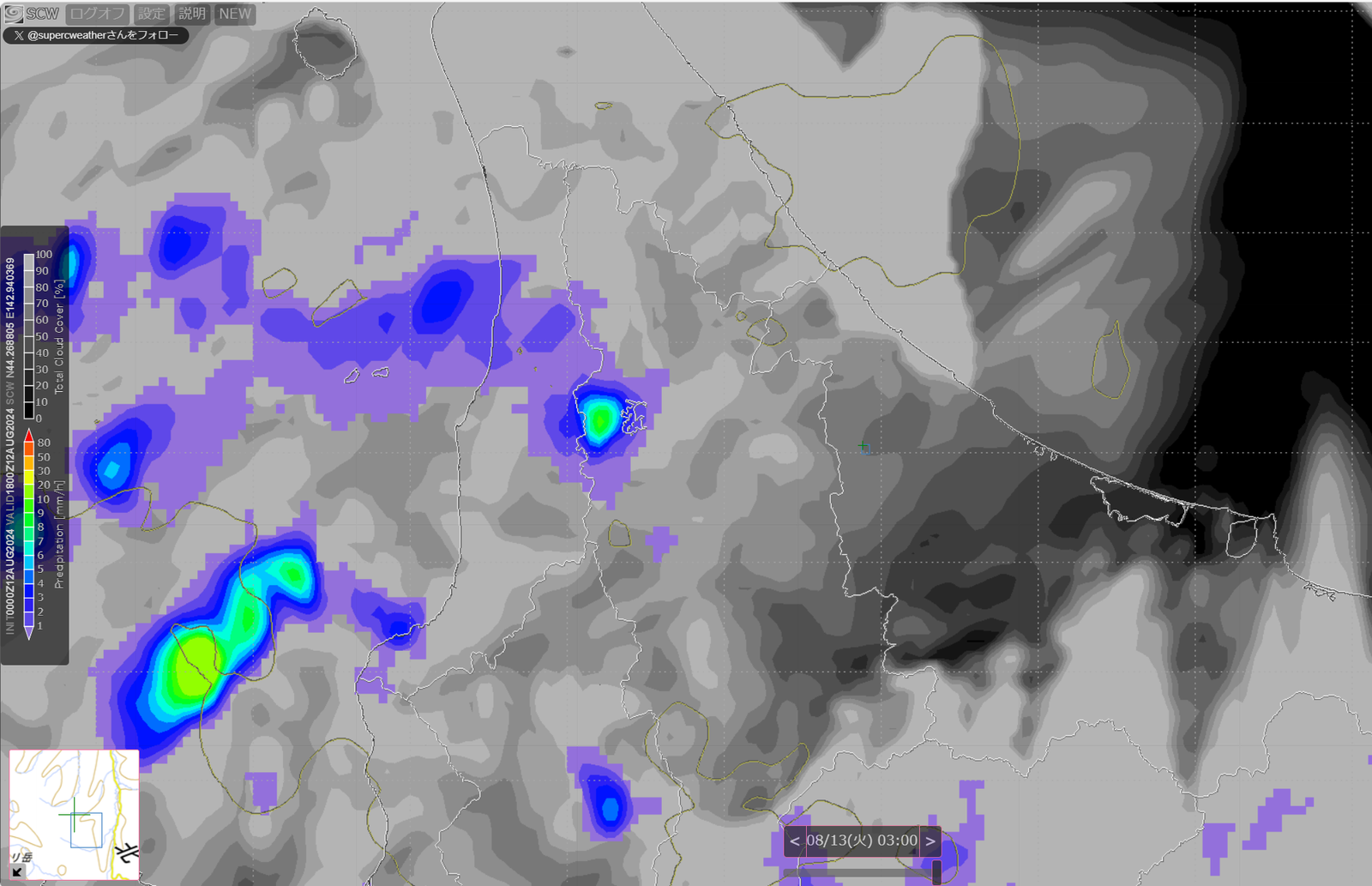 SCWの局地18では、美瑛のへんが晴れそうな予報。