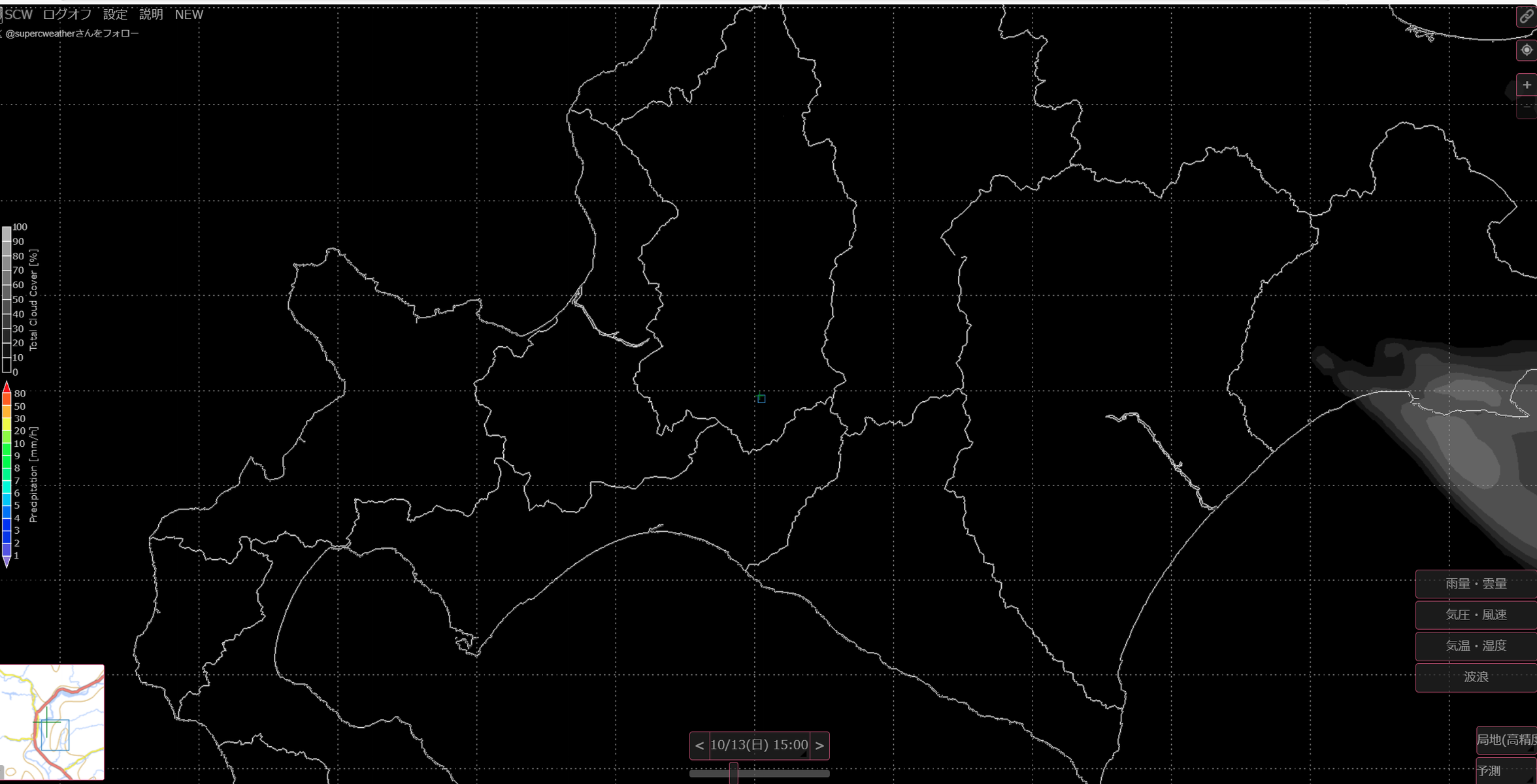 ところが、あまり天気予報がよくないとのこと。前日のSCWでは真っ黒だったはずですが…