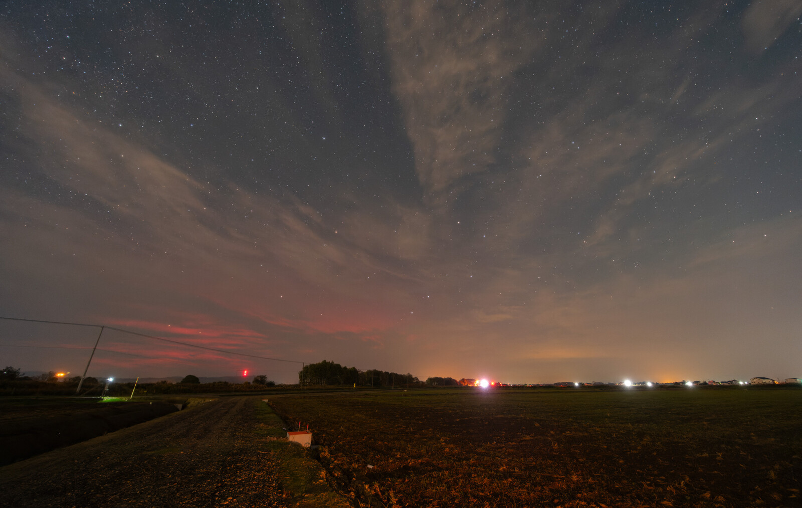 肉眼では見えなかったのですが、画面向かって右の方向にオーロラの光の筋が動いていきました。