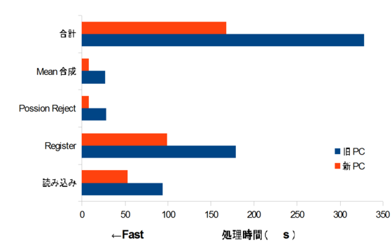 ただ、時間がかかっているのが読み込みとRegisterなので、全体でみると約2倍程度の速度アップでした。